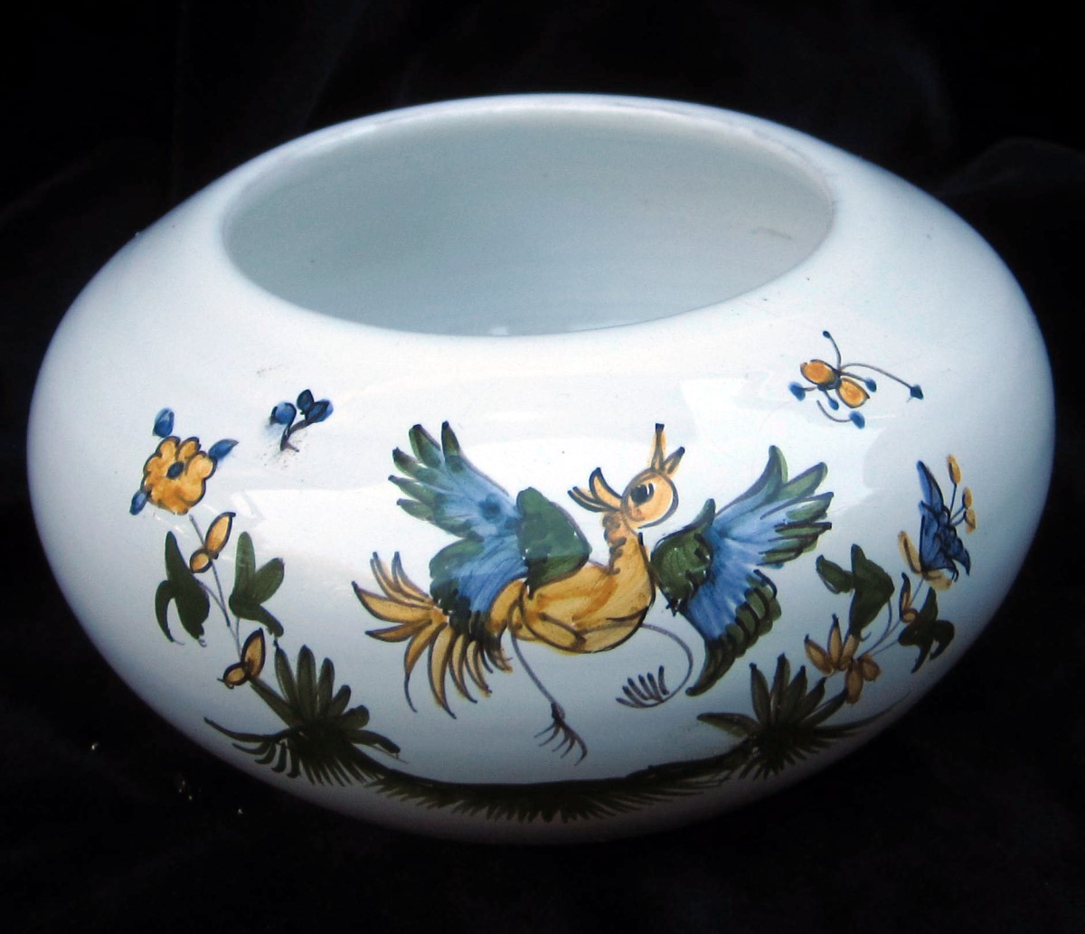 Petit vase rond boule tourné, idéal pour bouquet dense à tiges courtes. Faïence de Moustiers façonnée et peinte à la main avec certificat d’authenticité. Diamètre 14cm * H 8cm